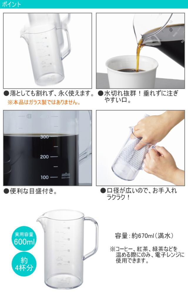 コーヒーサーバーストロン 600 ビーカータイプ 1個 TW-3766 日本製 曙産業 割れにくい 軽量 電子レンジ可 食洗機可