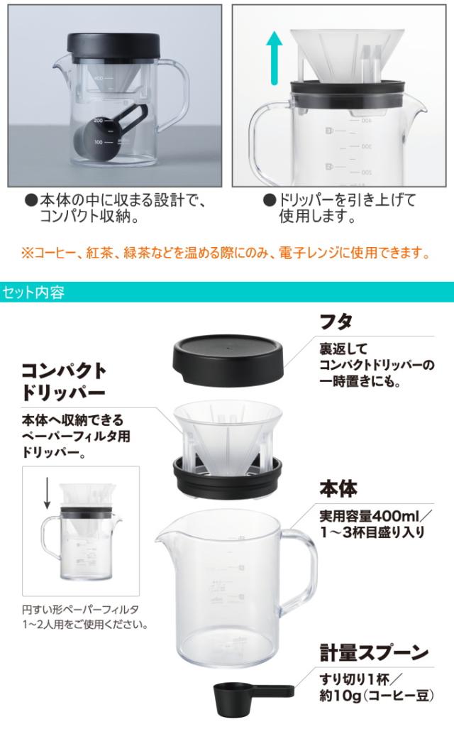 コーヒーサーバーストロン 400 ビーカー コンパクトドリッパーセット 1個 日本製 曙産業 割れにくい 電子レンジ可 食洗機可