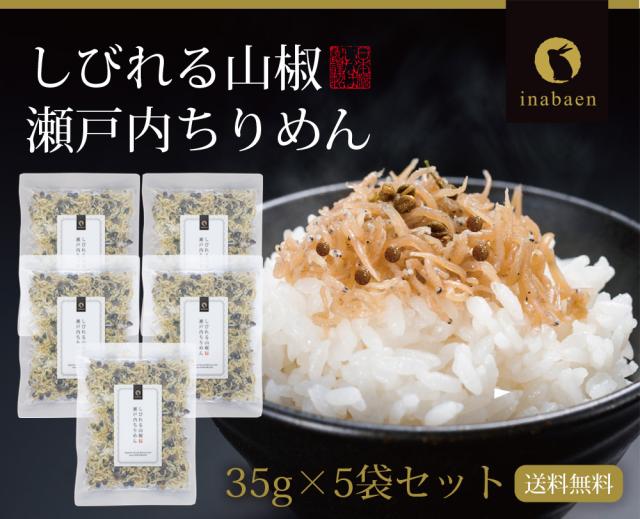 ふりかけ ちりめん山椒 5袋セット 35g×5袋 メール便送料無料 しびれる山椒 瀬戸内ちりめん ふりかけ ちりめんじゃこ おにぎり ご飯のおとも お茶漬け ギフト 時短 一人暮らし 食品