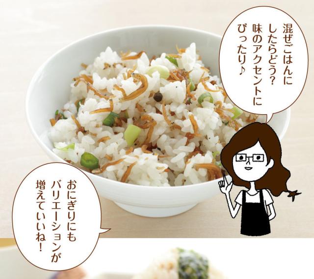 本品で使用しているちりめんは、えびやかにが混ざる漁法で採取しています。