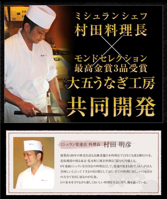 モンドセレクション金賞受賞!ミシュラン常連店「鈴なり」の村田料理長監修のうなぎ蒲焼き。