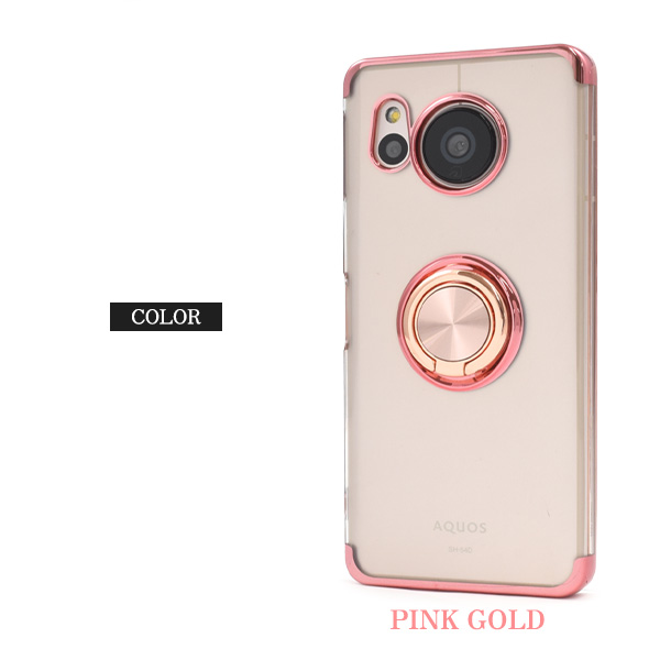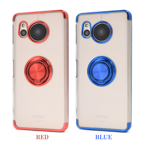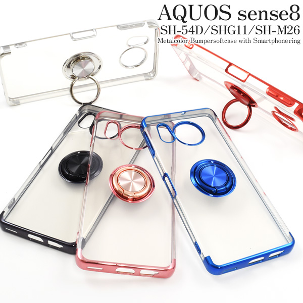 スマホケース AQUOSsense8 SH-54D/SHG11/SH-M26 スマホリング付 メタルカラーバンパー ソフト クリアケース ソフトケース 透明 背面カバー 柔らかい TPU素材 スマホカバー シンプル オシャレ かわいい 人気