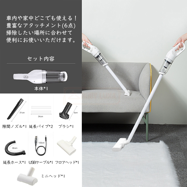 | 付属品 | ◆隙間ノズル*1、延長パイプ*2、ブラシ*1、延長ホース*1、フロアヘッド*1、ミニヘッド*1、USBケーブル*1 |
