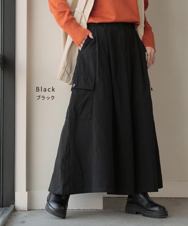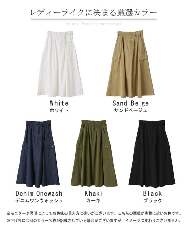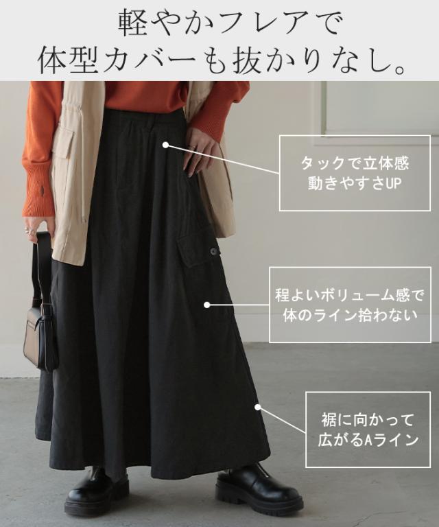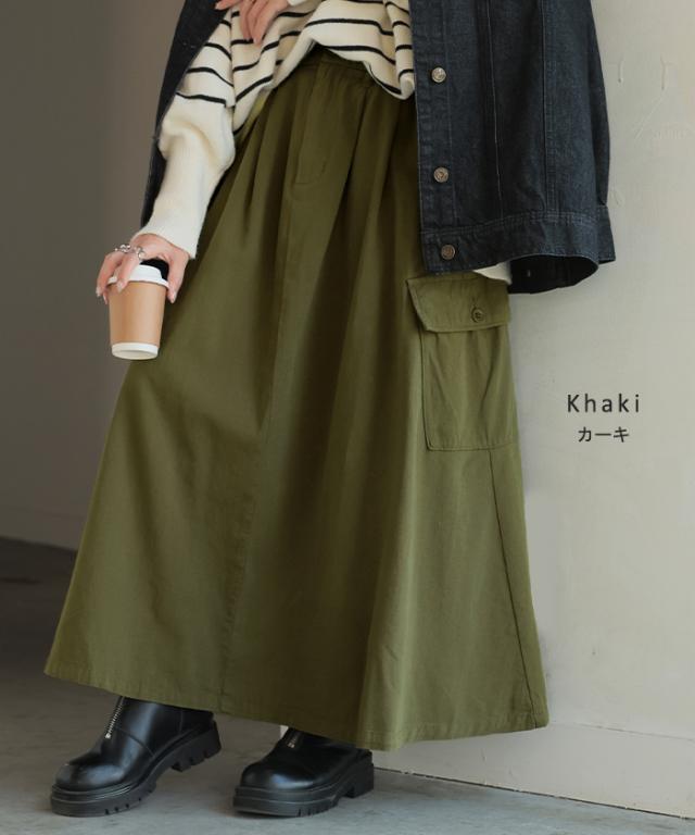 スカート ロング カーゴ ワークスカート Aラインスカート レディース ボトムス ロングスカート マキシ ウエストゴム ポケット 無地 ゆったり ミリタリー カーゴスカート 体型カバー デニム アウトドア 大きいサイズ 黒 カーキ 春 夏 HUG.U 秋新作