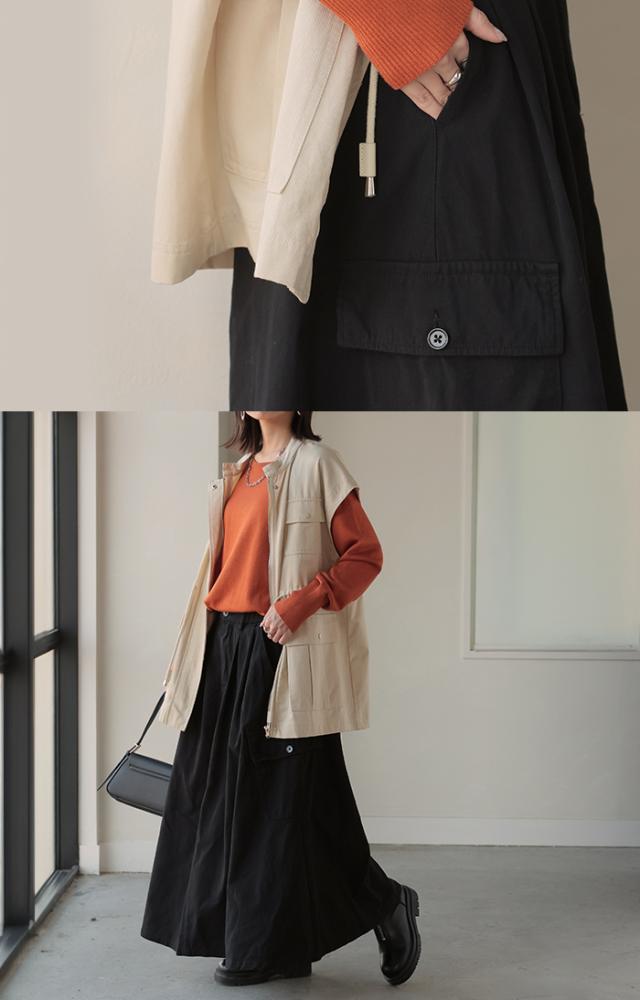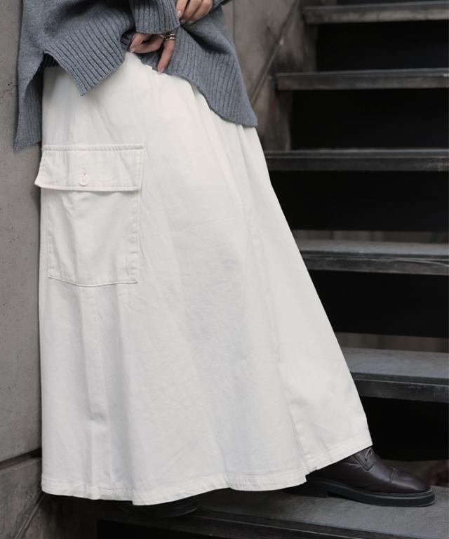 ワークディテールを活かしながらも、レディライクに着こなせるカーゴスカートです。