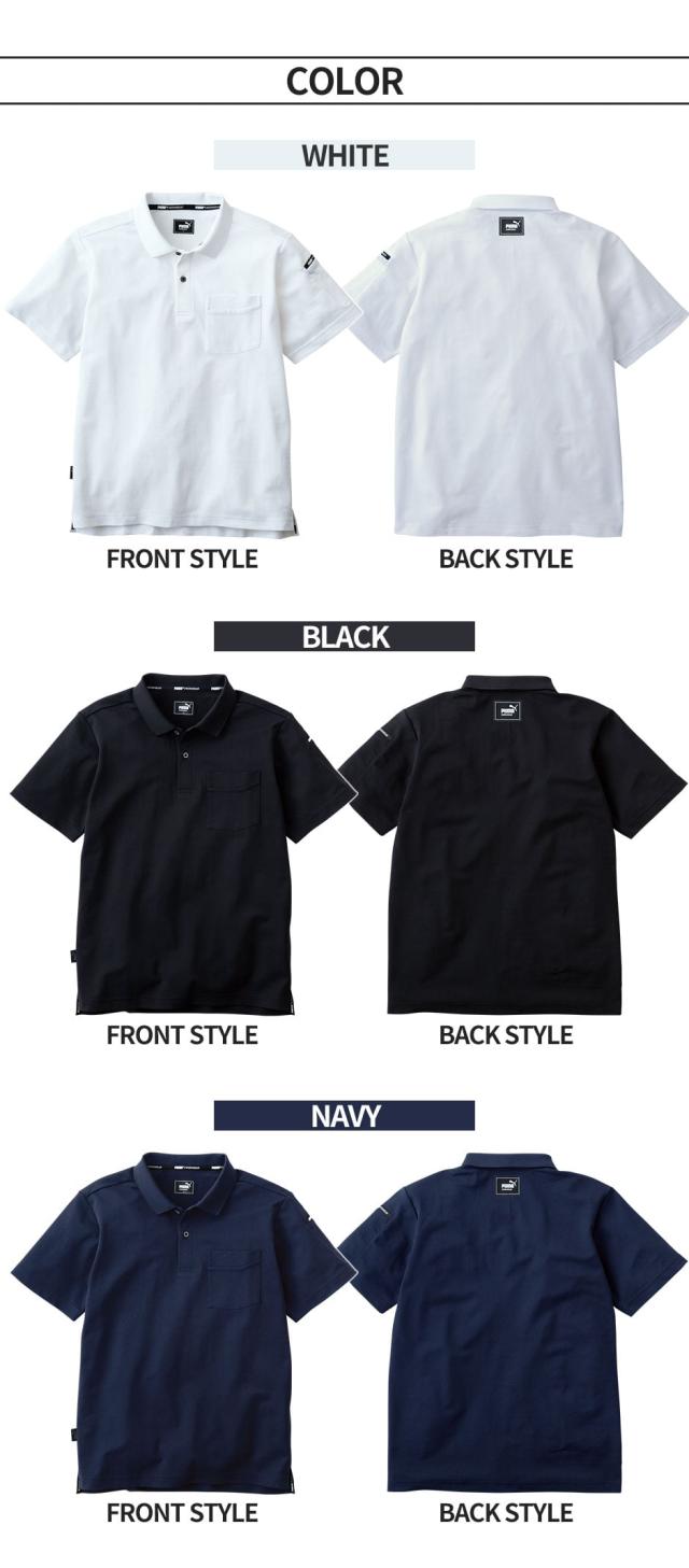作業ウェア PUMA プーマ 半袖ポロシャツ メンズ 吸汗 速乾 ストレッチ 作業着 作業服 消臭テープ UVカット クールビズ 涼しい 制服 ポロシャツ ユニフォーム ポケット スポーツ ゴルフ 紺 黒 白 春夏 ワーク PW-4014N