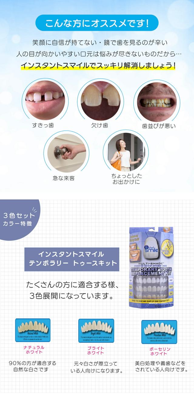 インスタントスマイル テンポラリー トゥースキット 部分対応 抜け歯用 抜け歯 欠け歯 上歯 下歯 男女兼用 疑似入れ歯 ワンタッチ 付け歯 審美歯 義歯 つけ歯 仮歯 審美 簡単 装着
