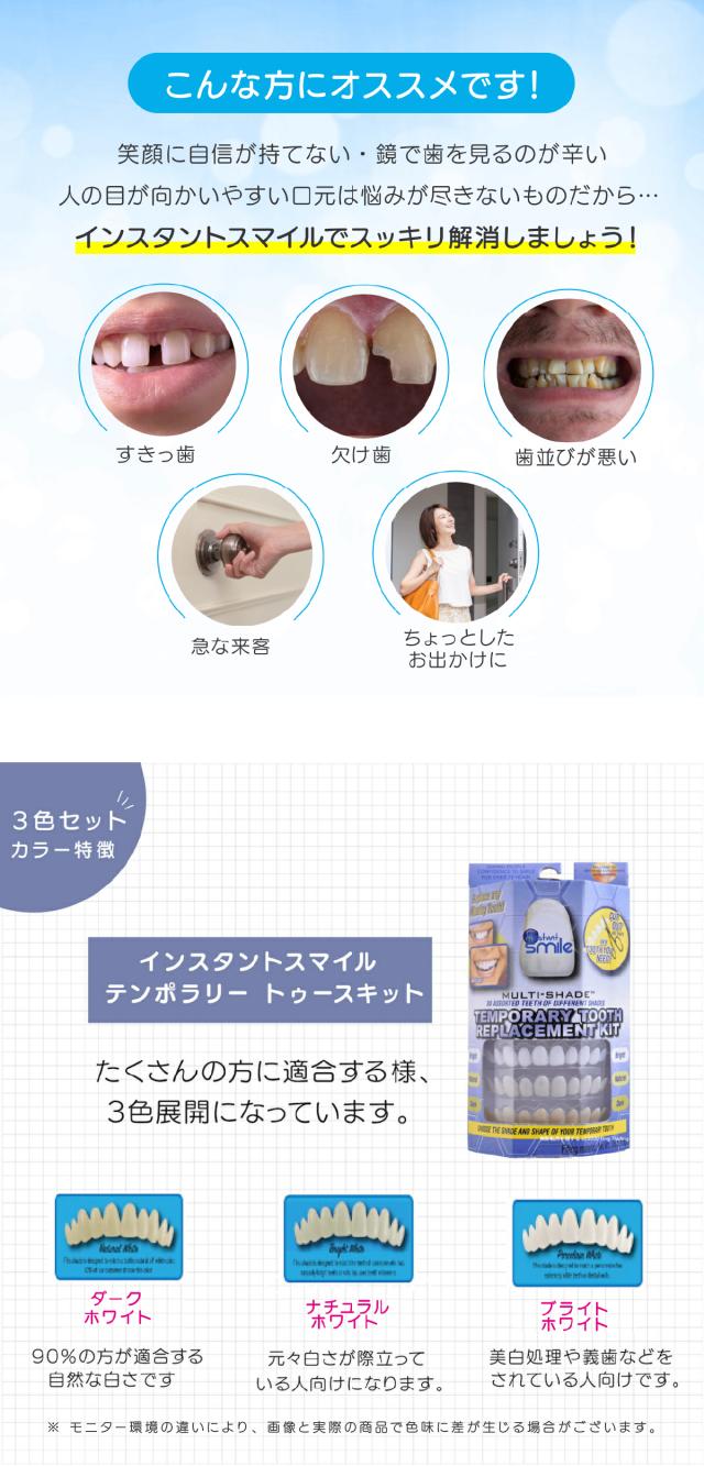 インスタントスマイル テンポラリー トゥースキット 部分対応 抜け歯用 抜け歯 欠け歯 上歯 下歯 男女兼用 疑似入れ歯 ワンタッチ 付け歯 審美歯 義歯 つけ歯 仮歯 審美 簡単 装着