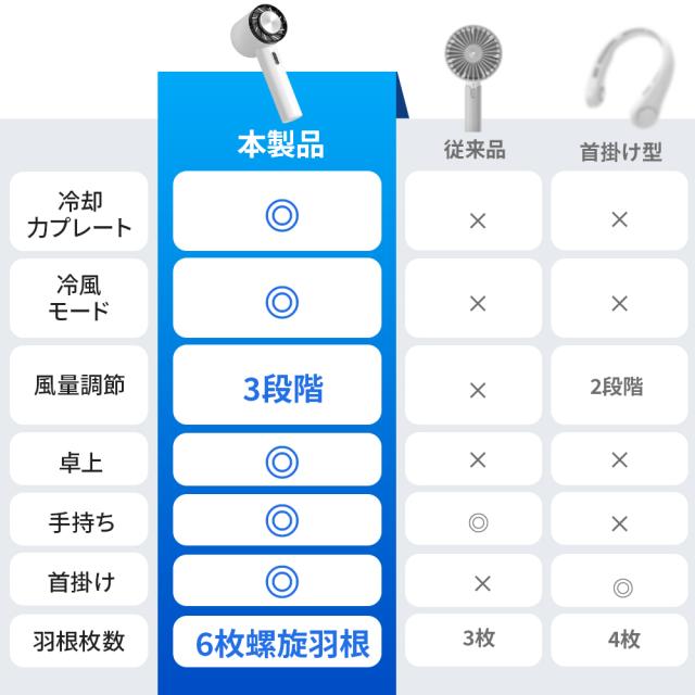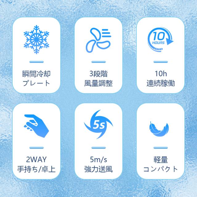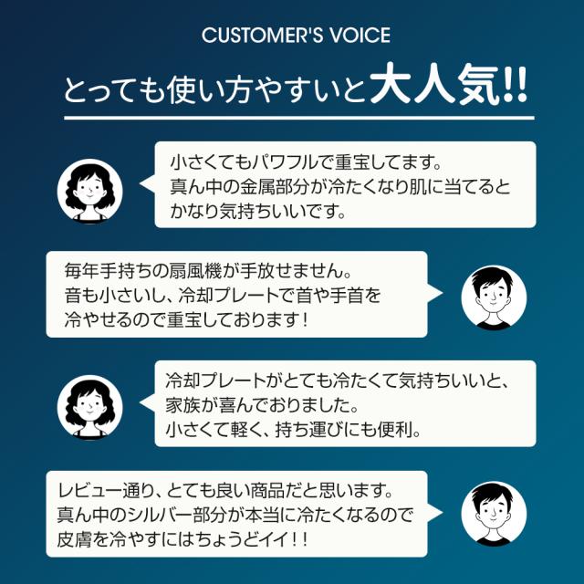 - 小型で軽量で使いやすく風量も申し分ないです。 ただ冷却プレートは温度差で結露が付きやすく肌に当てて使うには雫で濡れるので抵抗あります。