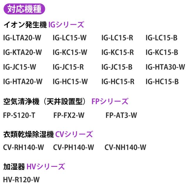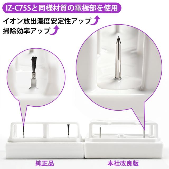 ■ 対応型番:IZ-C90M(本製品はシャープの「加湿空気清浄機、イオン発生機、空気清浄機(天井設置型)、衣類乾燥除湿機、加湿器」にご使用いただける互換品です。同性能ですので共通してお使い頂けます。) ■改良版プラスマジェネレイションはIZ-C75Sと同様材質の電極部を使用しているため、接触部位が集中して、イオン放出濃度がより安定し、消耗を節約する。ホコリが付着する面積が減少したため、純正品のブラシより掃除が簡単、メンテナンス間隔が長くなります。 ■ 交換の目安説明: 1日24時間連続して運転した場合、約2年(使用時間や設置場所により交換時期は異なります。) ■ 使用環境や使用場所(食用油など油成分が浮遊している場所、ホコリや湿気の多い場所、スプレーや化学薬品を使う場所など)により交換時期が早くなる場合があります。 ■ 安定して高濃度プラズマイオンを放出するために、定期的にイオン発生ユニットの交換が必要です。(交換時期になると本体正面のランプが点滅しお知らせしますので、その際には速やかに交換をお勧めいたします。) 高濃度プラズマイオン発生ユニットIZ-C90M対応機種: 【加湿空気清浄機 KIシリーズ】 KI-SS54-W , KI-SS53-W , KI-SS52-W , KI-SS51-W , KI-SS50-W , KI-SS50-H , KI-S70Y9-W KI-S70Y9-H , KI-S70E4-W , KI-S70E4-H , KI-S50E9-W , KI-S50E9-H , KI-S50E8-W , KI-S50E8-H KI-S50E7-W , KI-S50E7-H , KI-S50E6-W , KI-S50E6-H , KI-S50E5-W , KI-S50E5-H , KI-S50E3-W KI-S50E3-H , KI-S50E2-W , KI-S50E2-H , KI-RS50-W , KI-RS50-H , KI-RS40-W , KI-RD50-W KI-PS50-W , KI-PS50-H , KI-PS40-W , KI-PD50-W , KI-NX75-W , KI-NX75-T , KI-NS70-W KI-NS70-T , KI-NS50-W , KI-NS50-H , KI-NS40-W , KI-ND50-W , KI-N75YX-W , KI-N75YX-T KI-LX75-W , KI-LX75-T , KI-LS70-W , KI-LS70-T , KI-LS50-W , KI-LS50-H , KI-LS40-W KI-LD50-W , KI-L75YX-W , KI-L75YX-T , KI-JS70-W , KI-JS70-H , KI-JS50-W , KI-JS50-H KI-JS40-W , KI-HS70-W , KI-HS70-H , KI-HS50-W , KI-HS50-H , KI-HS40-W , KI-GS70-W KI-GS70-HKI-GS50-W , KI-GS50-H 【イオン発生機 IGシリーズ 】 IG-LTA20-W , IG-LC15-W , IG-LC15-R , IG-LC15-B , IG-KTA20-W , IG-KC15-W , IG-KC15-R IG-KC15-B , IG-JC15-W , IG-JC15-R , IG-JC15-B , IG-HTA30-W , IG-HTA20-W , IG-HC15-W IG-HC15-R , IG-HC15-B 【空気清浄機(天井設置型) FPシリーズ】 FP-S120-T , FP-FX2-W , FP-AT3-W 【衣類乾燥除湿機 CVシリーズ】 CV-RH140-W , CV-PH140-W , CV-NH140-W 【加湿器 HVシリーズ】 HV-R120-W ※ご購入の前にご希望商品の対応機種一覧より、適合商品である事をご確認願います。 ※購入検討商品に関してご不明な点やご不安をお持ちのお客様は、ご購入前にお問い合わせください。 |