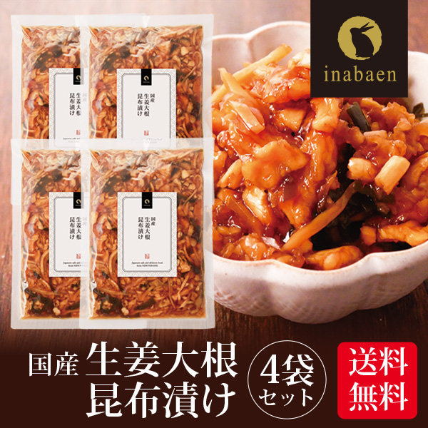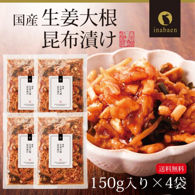 漬物 国産 生姜大根昆布漬け 150g 4袋セット メール便送料無料 お漬け物 お漬物 ご飯のおとも ご飯のお供 お礼 贈答 内祝い つけもの 弁当 贈物 プチギフト お土産 みやげ 茶匠庵 お惣菜 時短 おかず 一人暮らし 食品 非常食