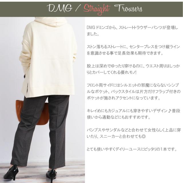 ドミンゴ パンツ DMG パンツ D.M.G ストレート トラウザーパンツ ( 14-076T ) 千鳥格子 起毛素材 センタープレス ドミンゴ ディーエムジー アーベン 普段使い 実用的