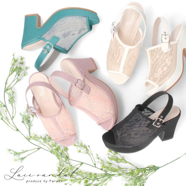 サンダル レディース ストラップ レース 太ヒール 透け感 9センチ ヒール シースルー チュールレース Parade 992803