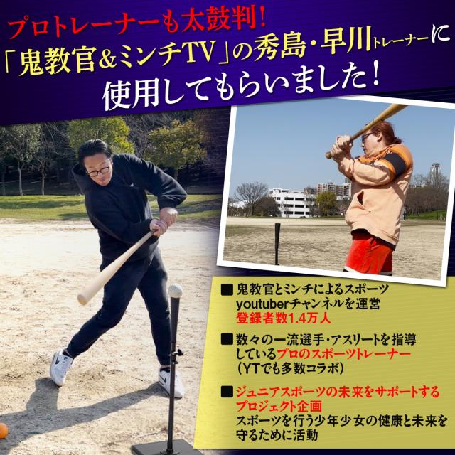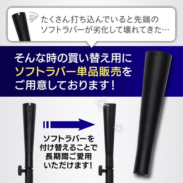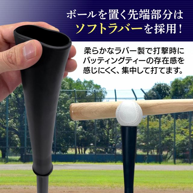 【存在感を感じにくいソフトラバー採用】先端はバッティングの際に存在を感じにくいソフトラバーを採用。ボールを実際に打ったようなリアルな感触が得られます。また軟球・硬球はもちろん練習用ボールにも対応!直径5cm以上ならばどんなボールでもご利用いただけます。