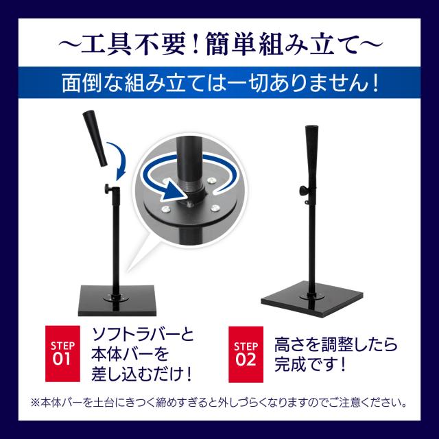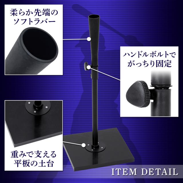 【細かい高さ調整が可能】ハンドル付きのボルトでしっかりと固定できるため、ゴムの力だけで固定している無段階式と違いズレにくくなっております。平板タイプで重みで支えるので、倒れにくいバッティングティーとなっております。