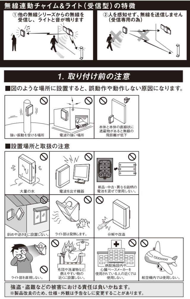 W-670 乾電池式 無線連動チャイム&ライト 受信型+センサー 送信型セット