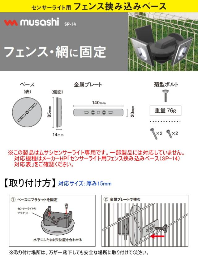 センサーライト用 フェンス挟み込みベース SP-14 送料無料 オプションパーツ 取り付け金具 網 固定 RITEX ムサシ