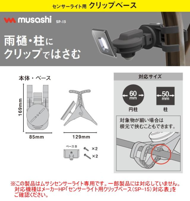 センサーライト用 クリップベース SP-15 送料無料 オプションパーツ 取り付け金具 クリップ 柱 挟む RITEX ムサシ