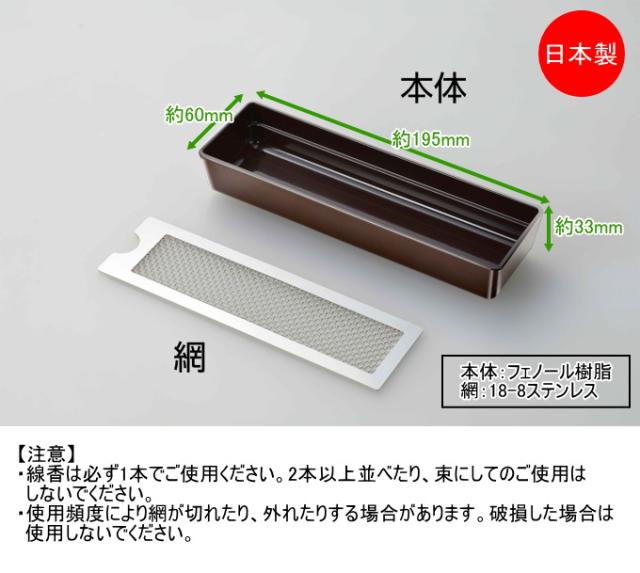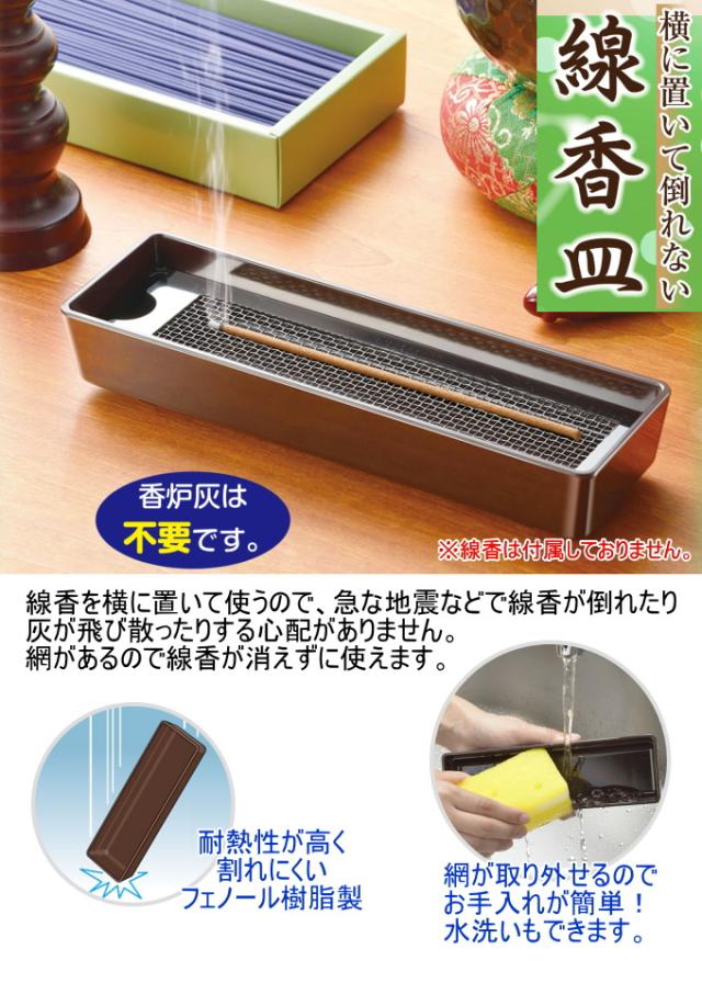 横に置いて倒れない 線香皿 SV-7343 日本製 線香皿 横置き 寝かせる 仏具用品 フェノール樹脂製 割れにくい 網付き