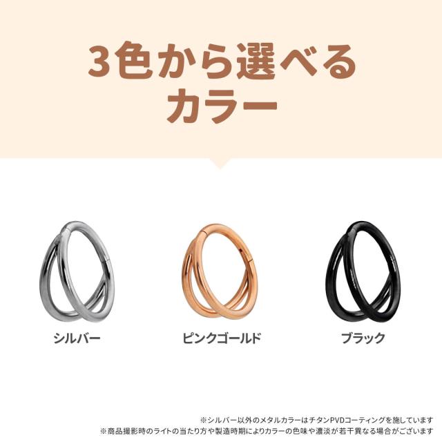 チタン 2連 ライン ワンタッチ セグメント リング 16G チタン ヘリックス 鼻ピアス 軟骨ピアス ボディピアス 着脱簡単 キャッチレス