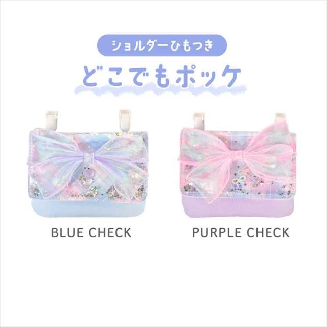 移動ポケット 女の子 ショルダー リボン 小学生 キッズ クリップ 子供 ポシェット ポーチ ポケットポーチ ポッケ かわいい おしゃれ シャカシャカ キラキラ ラメ 取り付け ひも 紐付き 保育園 幼稚園 入学準備 入園 通園 通学 小学校 低学年 一年生 パープル ピンク 水色