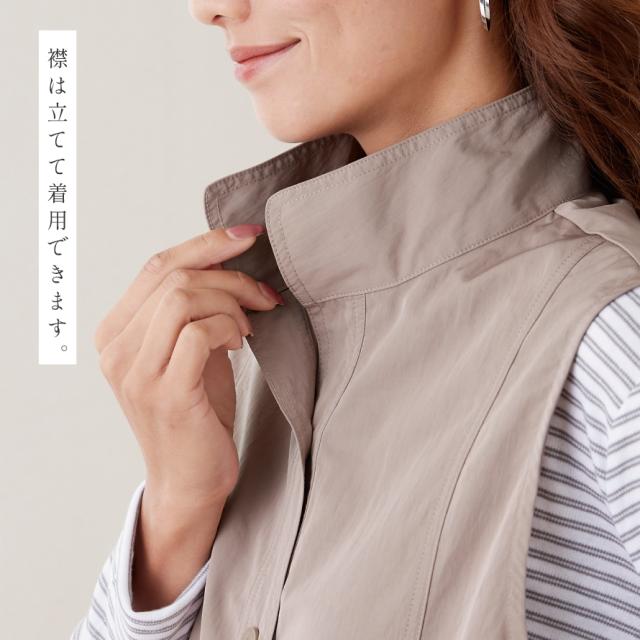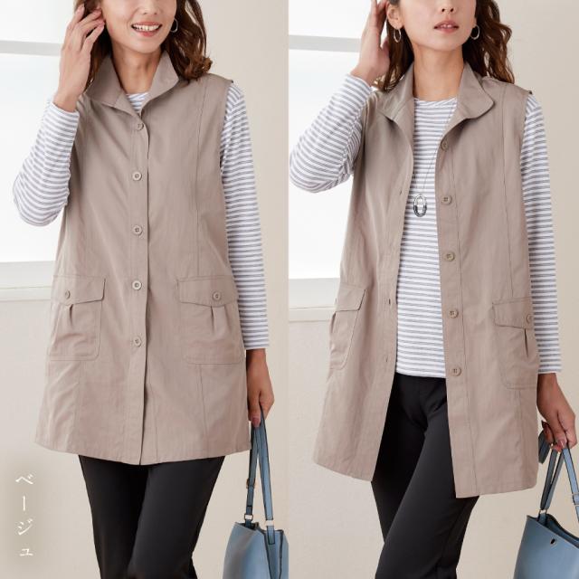 ベスト レディース 春 春夏 前開き 襟付き uvカット 撥水 薄手 ポケット付き 3L 大きいサイズ ゆったり さっと羽織ってきちんと見えベスト