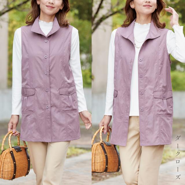ベスト レディース 春夏,ベスト 前開き レディース,襟 付き ベスト レディース,ベスト,襟,衿,羽織り,撥水加工,撥水,はっ水,uv,uvカット,紫外線カット,日焼け対策,日焼け防止,ワッシャー素材,シワ,持ち運び,コンパクト,お出かけ,旅行,体型カバー,細見え,すっきり,ポケット,ポケット付き,左右,薄手,薄い,春夏,春,夏,さわやか,爽やか,さらさら,サラサラ,レディース,女性,大人,シニア,高齢者,ミセス,M,L,LL,3L,大きいサイズ,ゆったり,大きめ,おしゃれ,お洒落,オシャレ,かわいい,可愛い,シンプル,カジュアル,フェミニン,上品,きれいめ,エレガント,高見え,スタイリッシュ,ダークローズ,ベージュ,