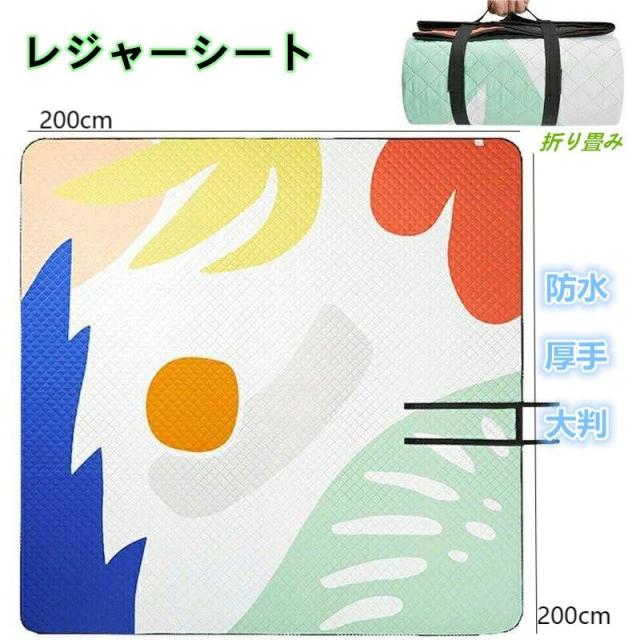 レジャーシート 折り畳み 防水防湿 4〜6人用 持ち運び便利 200x200cm 大判 厚手 簡単収納 丈夫 耐久性 通気性 ピクニックマット