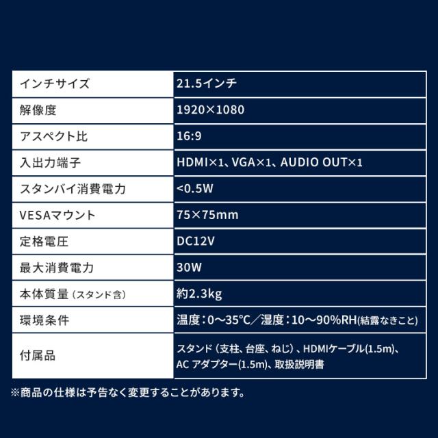 (検索用:モニター 21.5インチ フルhd 高画質 100Hz VA 非光沢 ディスプレイ パソコンモニター PCモニター フルハイビジョン 動画 液晶モニター 壁掛 4967576702973)