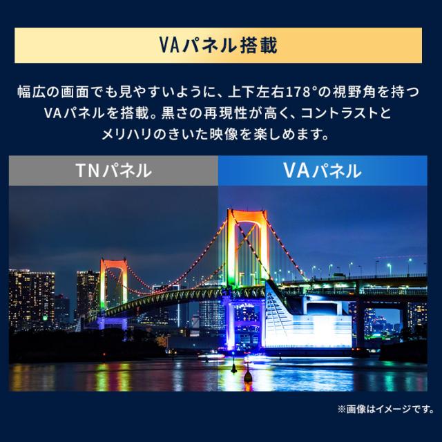 幅広の画面でも見やすいよう、上下左右178°の視野角を持つVAパネルを搭載しています。