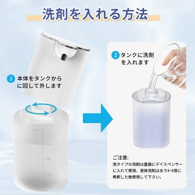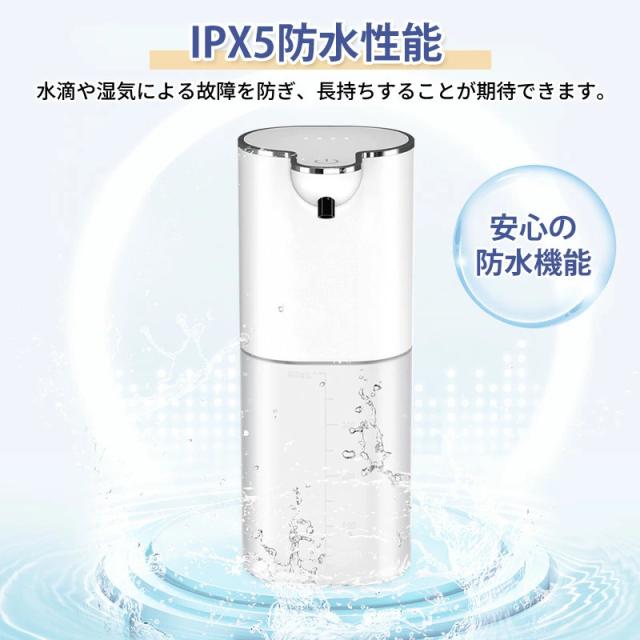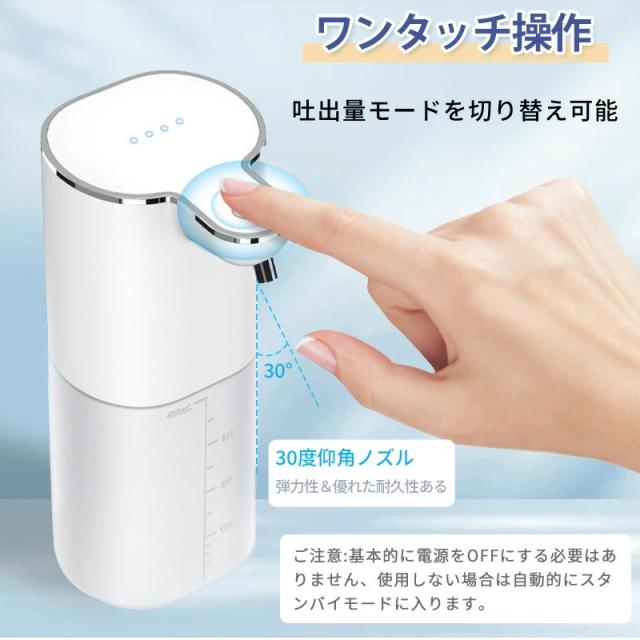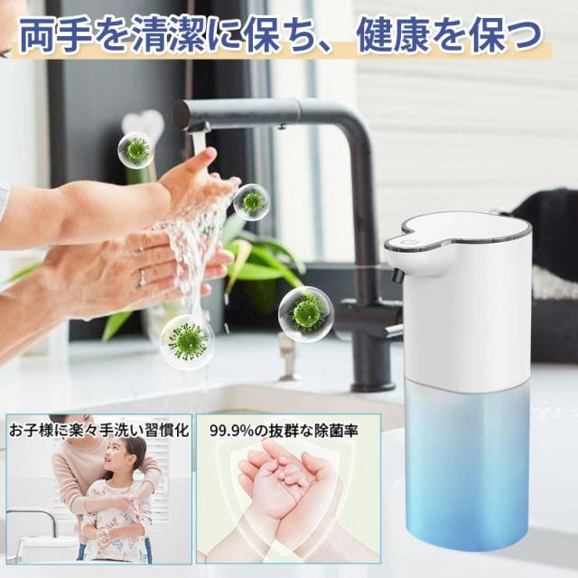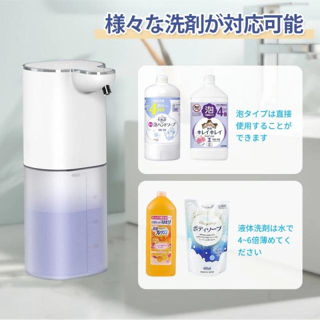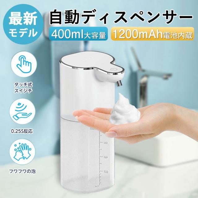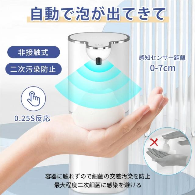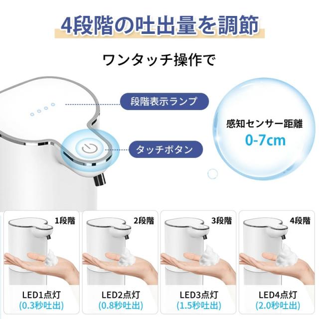 ソープディスペンサー 自動 泡 壁掛け 400mL 大容量非接触式 ハンドソープ ディスペンサー 防水 吐出量4段階調整 充電式 オートディスペンサー 防水 キッチン