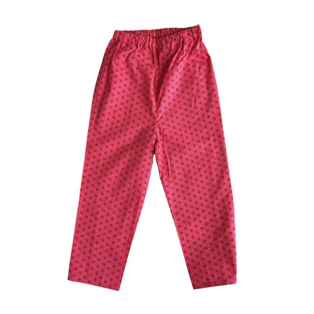 子供用長ズボン 【柄】ピンク麻の葉【サイズ】JS(身長目安:90〜100cm)、JM(100〜120cm)、JL(120~130cm)、JLL(130~140cm) 【素材】綿100% <こども キッズサイズ ベビーサイズ 股引 ゴム股引 ももひき パッチ ズボン >