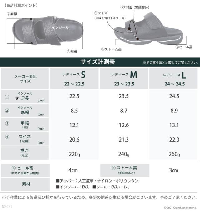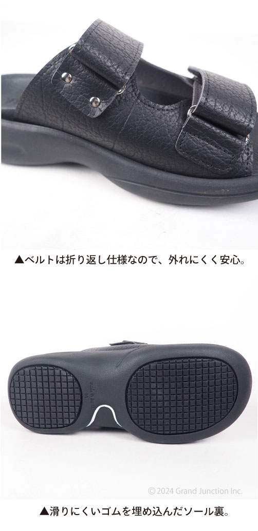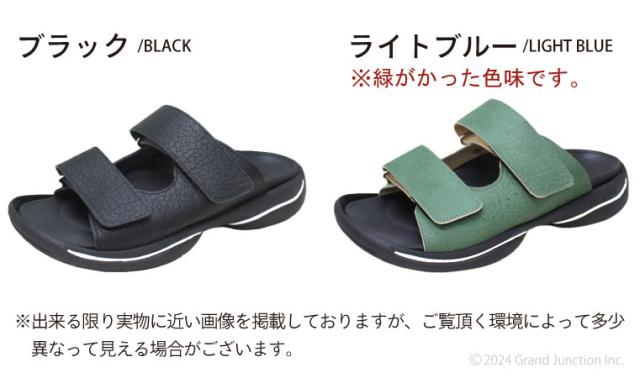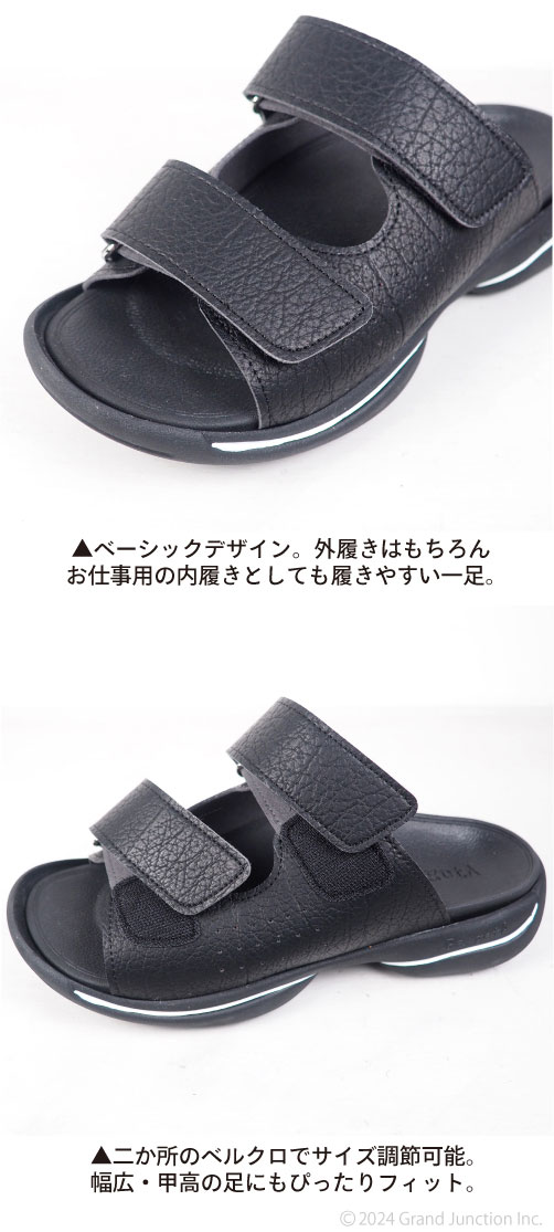 ■2本ベルトのベーシックなデザイン。 簡単ベルクロ(マジックテープ)仕様。足の形に合わせてベルトをしっかり留めれば、 足裏に吸い付くような凸凹インソールの構造も相まってフィット感が抜群です。 長時間の着用でも疲れにくく、ちょっとそこまでのお出かけから、お仕事中の社内履きとしてもおすすめです。