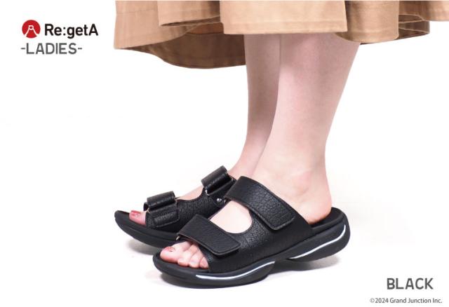 送料無料 リゲッタ レディース サンダル 黒 ベルクロ 厚底 痛くない つっかけ 幅広 甲高 日本製 夏 / RE3091 sms232