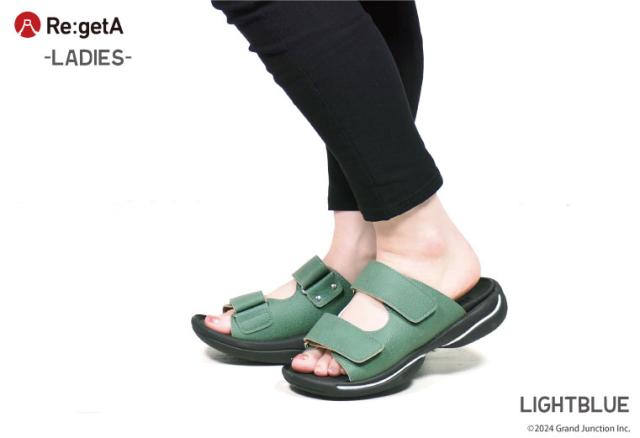 [レディース][サンダル][c甲高ν][ropentoez] (ブランド)[Re:getA] [リゲッタ][Regetta] (アイテム)サンダル コンフォートサンダル 健康サンダル ストラップサンダル (特徴)疲れない 履きやすい 歩きやすい 痛くない 幅広 甲高 滑りにくい 防滑 滑り止め 安定 定番 外反母趾 予防 防止 血行促進 足裏刺激 アーチサポート マジックテープ ベルクロ 凸凹インソール 弾力 やわらかインソール ローリング歩行 らくちん ゆったり マッサージ 日本製 (カラー)黒 ブラック 炭 墨 black くろ クロ ライトブルー 青緑 グリーン 青 あお ブルー 緑 みどり (サイズ) [22cm] [22.5cm] [23cm] [23.5cm] [24cm] [24.5cm] S M L
