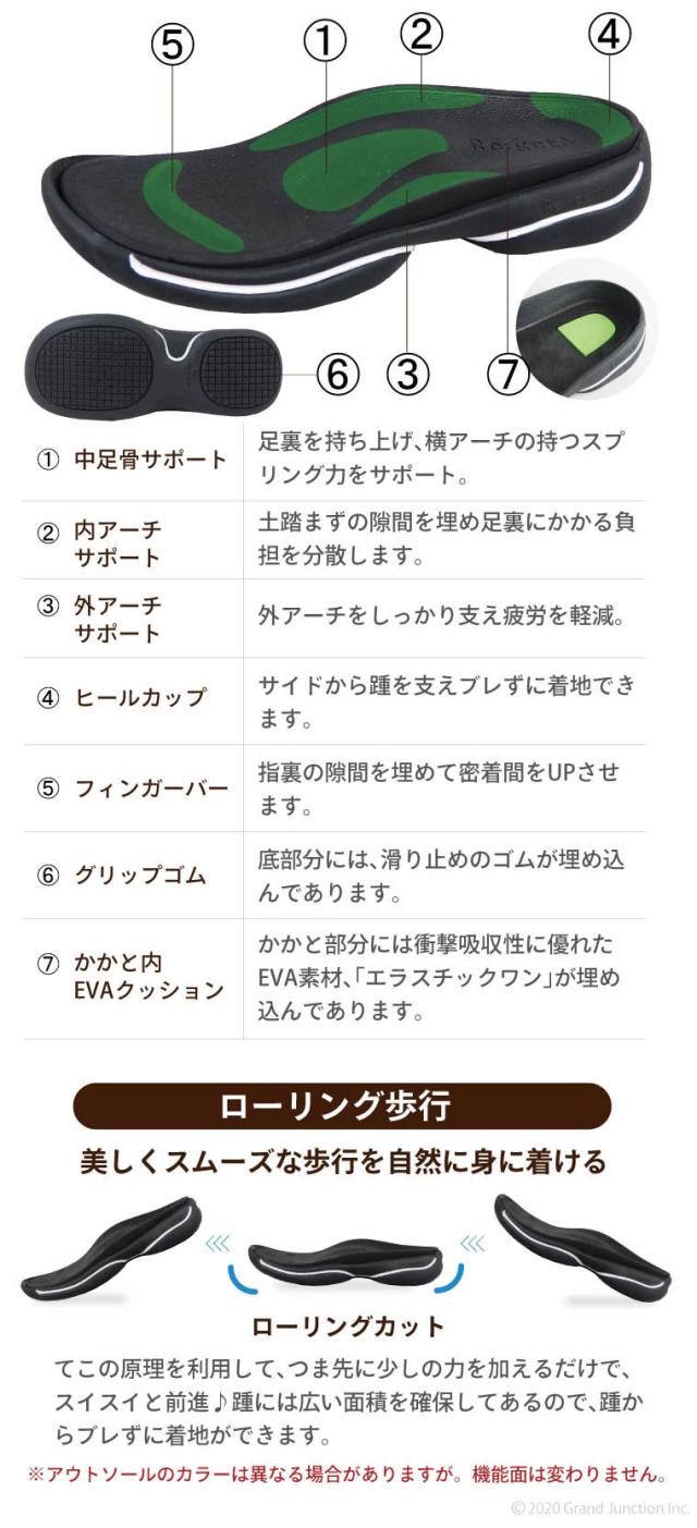 ■インソールには「グミインソール」を採用。 凸凹した構造のグミインソールは、血行促進をサポートし、 歩き疲れや冷え・むくみ防止にも期待できます。歩行・姿勢サポート効果もあり!