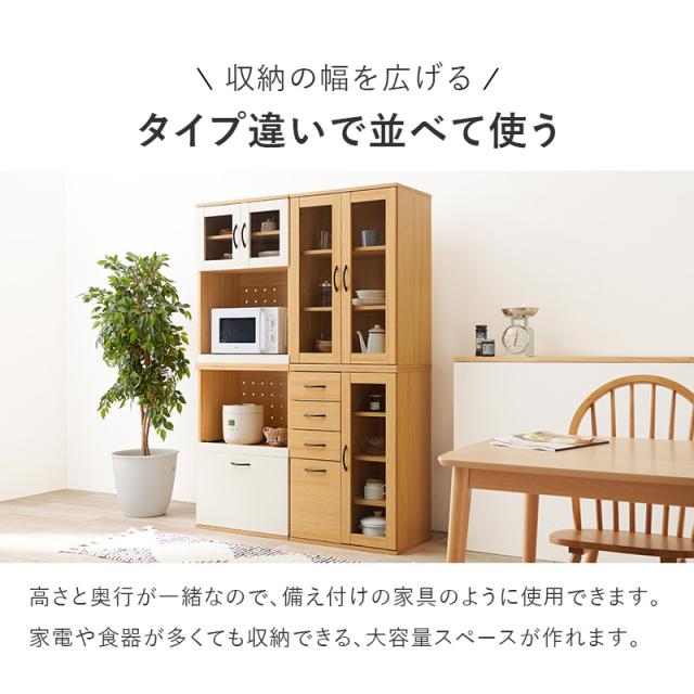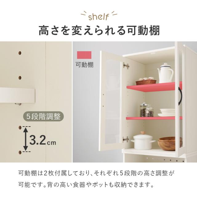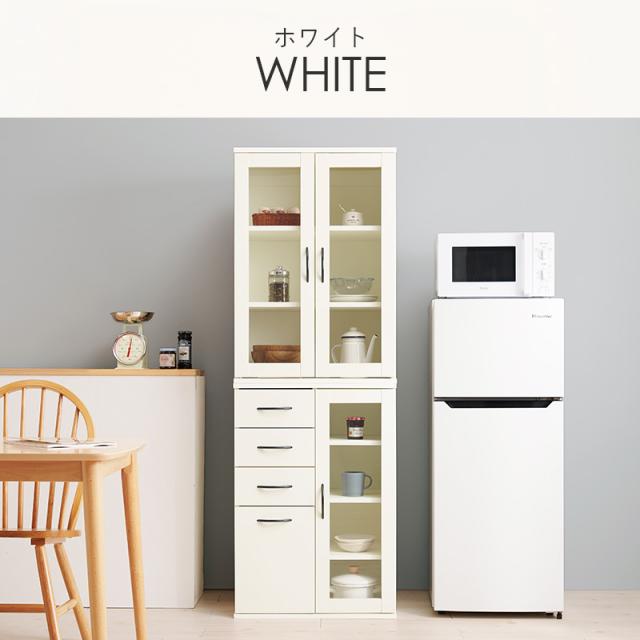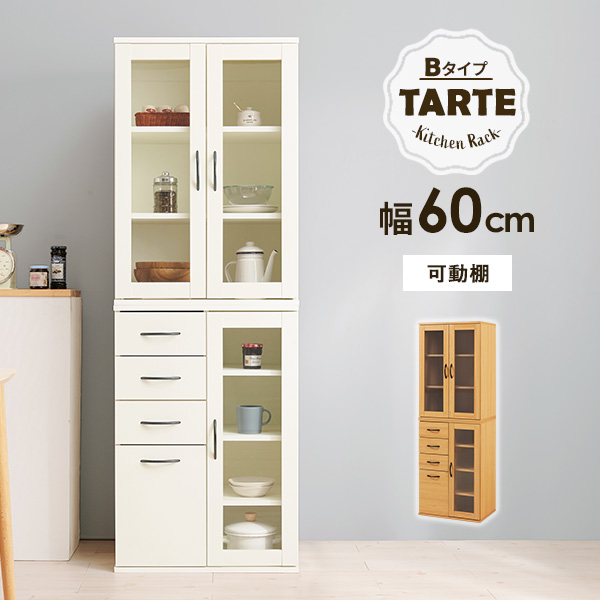 キッチンボード 60cm キッチンラック スリム 食器棚 収納 キッチン収納棚 扉付き カップボード おしゃれ 棚 台所収納 木目調 可動棚 タルトB 北欧 大容量 ガラス扉 カントリー調 ホワイト ナチュラル