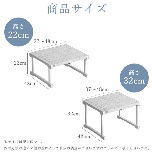 伸縮棚 積み重ね 幅 37-48cm 高さ 22cm 32cm 奥行 42cm 伸縮ラック クローゼット 押入れ 通気性 収納 防水 丈夫 頑丈 整理棚 シンク下 ワイド 空間活用 省スペース キッチンラック 空きスペース 隙間 新生活 すき間 衣替え スリム 長さ調整 押し入れ キッチン 玄関 脱衣所