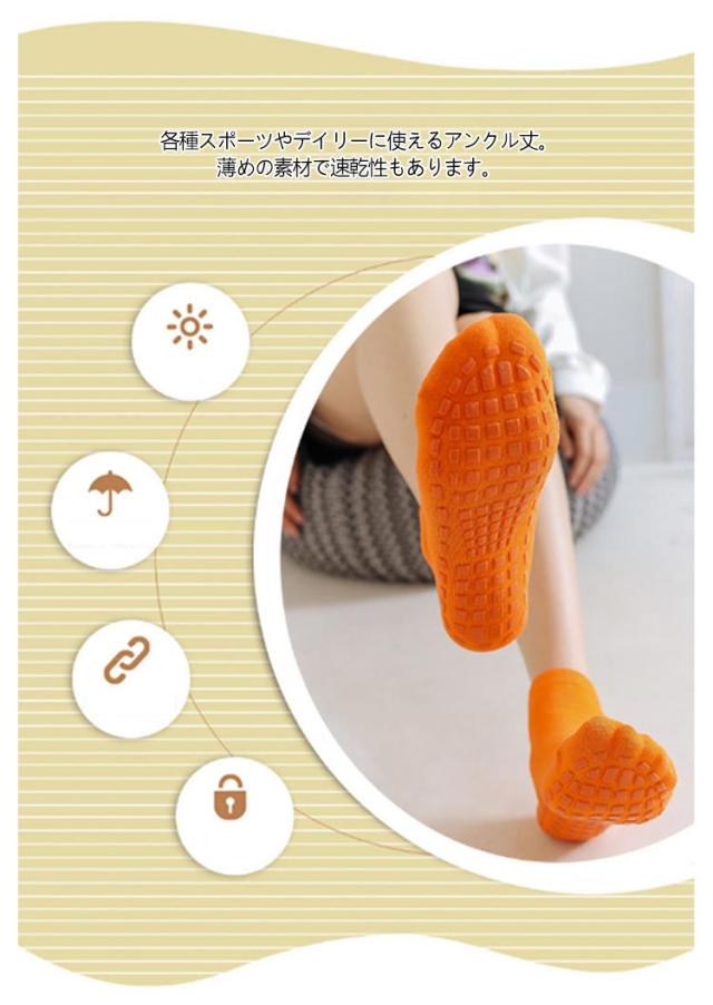 | ヨガやトレーニングなど、室内スポーツに最適◎ シリコン製滑り止め付きのヨガソックスです。 ソール一面のスーパーグリップ素材の滑り止めが付いた、とにかく滑らない!裸足に近いグリップ感が得られます。 各種スポーツやデイリーに使えるアンクル丈。薄めの素材で速乾性もあります。 普段使いはもちろん、スポーツやダンス、ヨガなどにも良いですね。 野球ソックスやサッカーソックス、バスケットボールソックス、テニスソックスなど、激しいスポーツでも、靴の中でグリップして普段以上のパフォーマンスが可能です。 ヨガソックスとしても、裸足よりも滑らないのでオススメです。 | |
