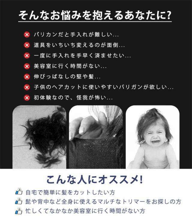 これ1台で髪、ヒゲ、体毛のお手入れが簡単に!