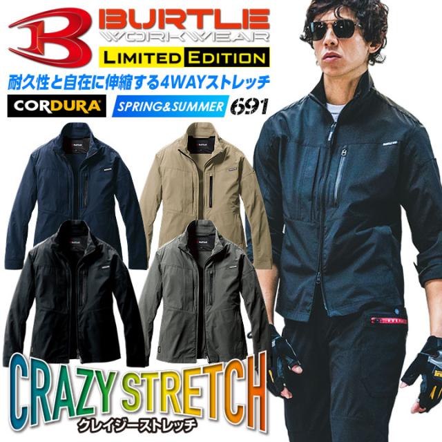 バートル 691 作業服 長袖ジャケット【春夏】吸水速乾 UVカット 接触冷感 4WAYストレッチ コーデュラ ナイロン素材 男女兼用 メンズ レディース ブルゾン ジャンパー 作業着 ユニフォーム BURTLE 691シリーズ