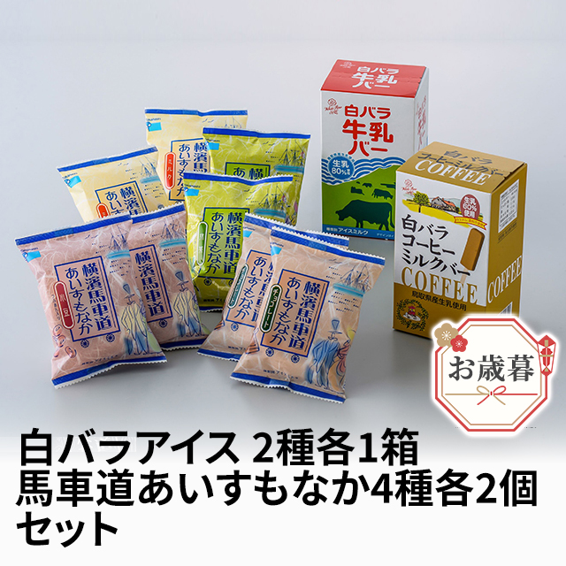 お歳暮 白バラアイス2箱×馬車道あいすもなかセット WRTBM 歳暮 スイーツ アイス ギフト 贈答 詰合せ 熨斗付き