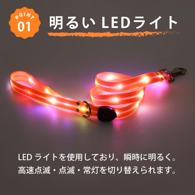犬用 犬 LEDライト リード 中型犬 大型犬 小型犬 夜 かわいい 丈夫 ロープ 1.2m 持ちやすい イヌ いぬ pet-lead03