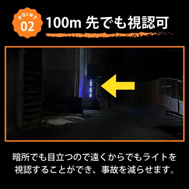 暗所でも目立つので遠くからでもライトを視認することができ、事故を減らせます。
