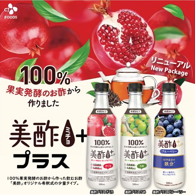 美酢プラス ざくろ 500ml 3本セット / CJ ミチョ+ ザクロ 韓国 ドリンク 果実酢 飲みやすい 飲むお酢 飲む お酢 果実