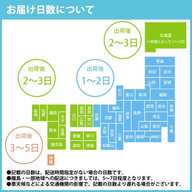 ※一部地域・離島につきましては、表示のお届け予定日期間内にお届けできない場合があります。ロットナンバー