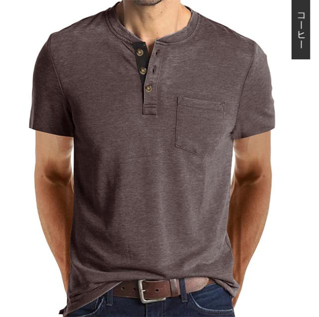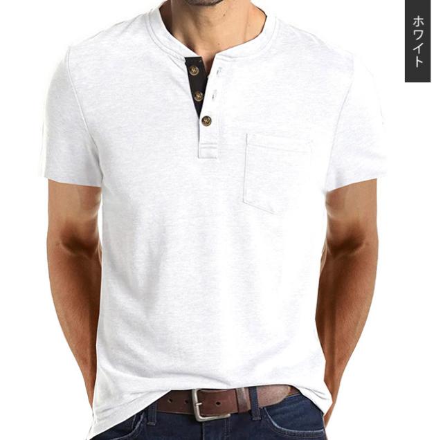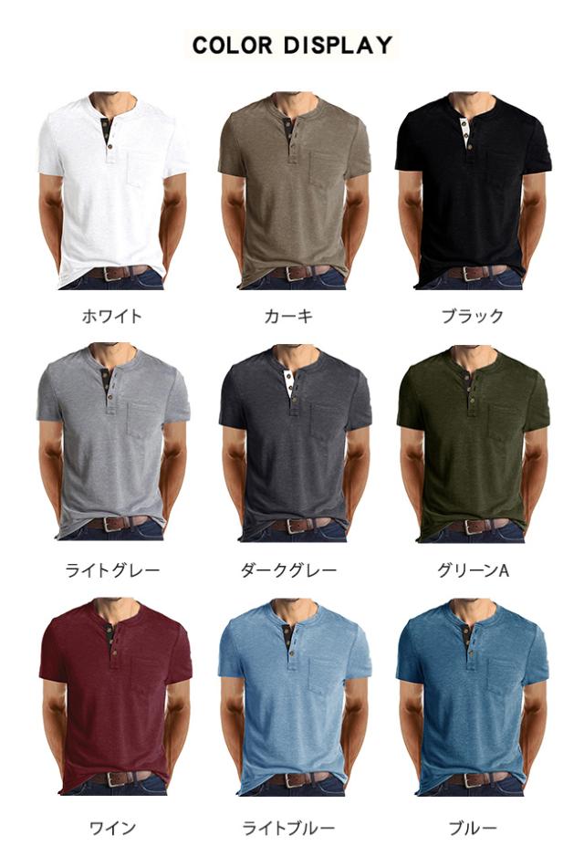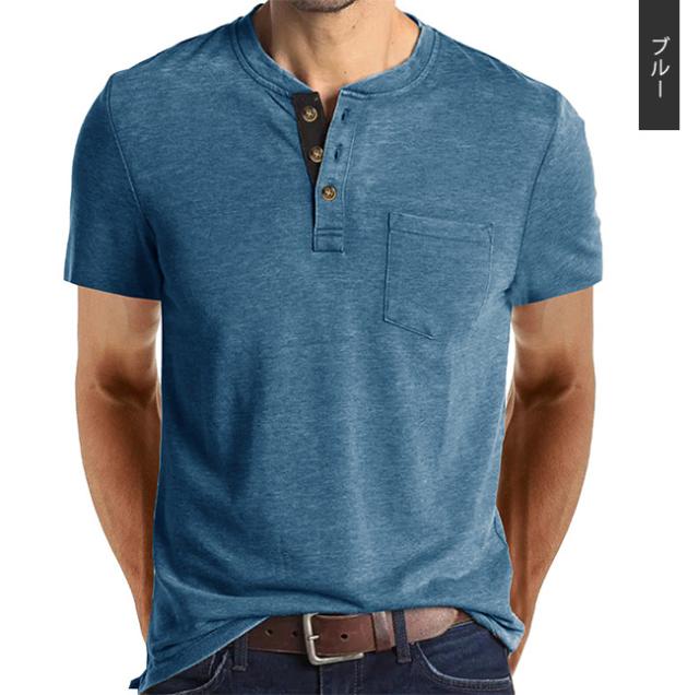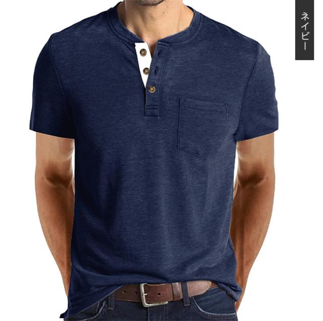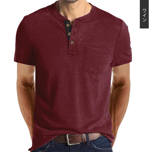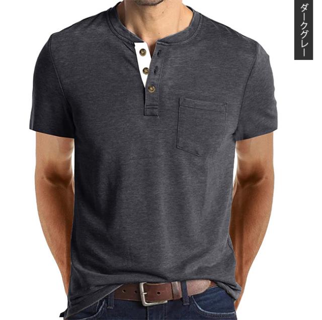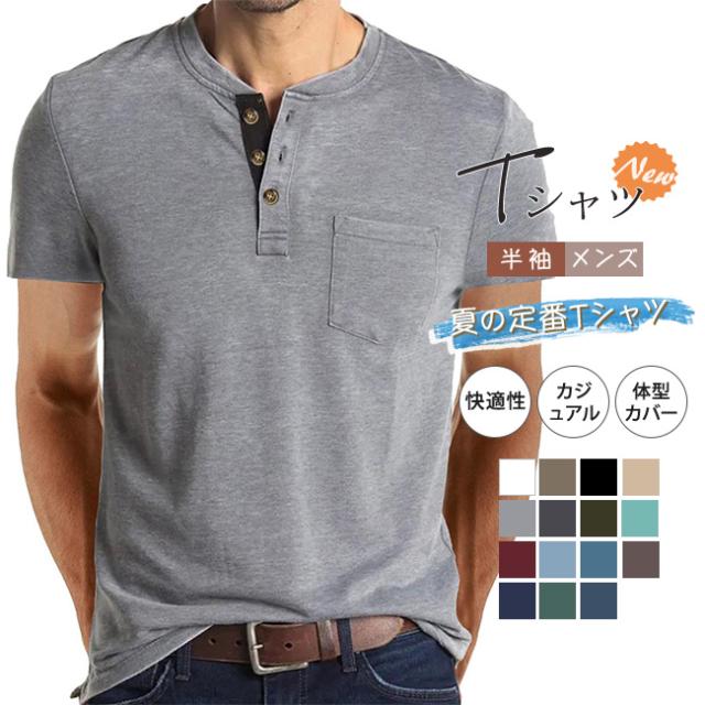 夏新作 tシャツ メンズ 半袖 Tシャツ ヘンリーネック メンズ ボタン 丸首 レイヤード 無地 通勤 ゴルフ フィットネス 夏服 父の日 プレゼント