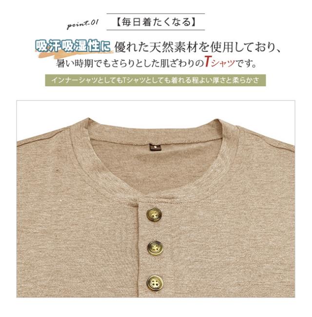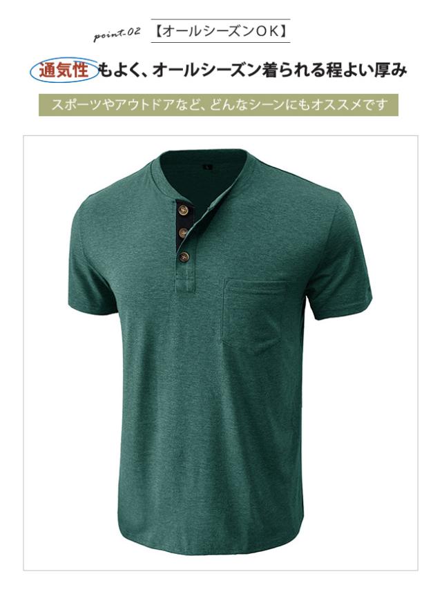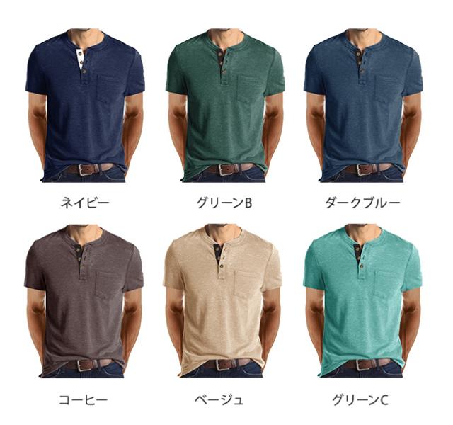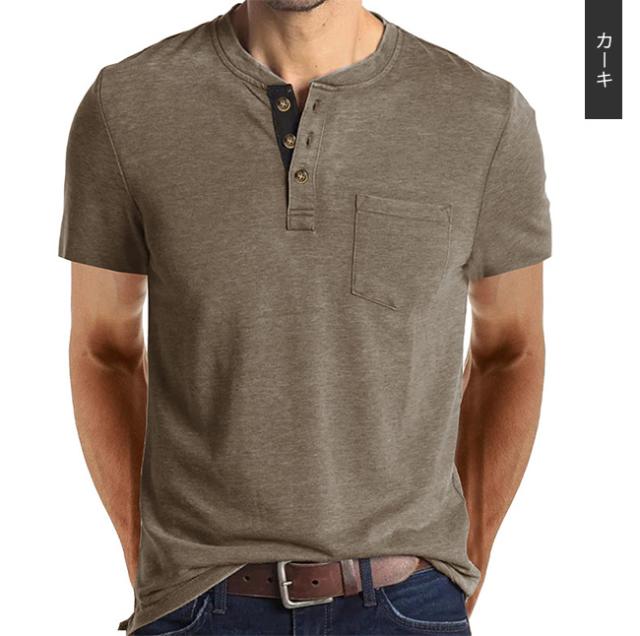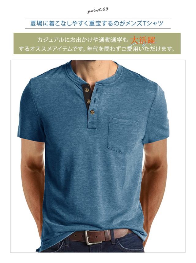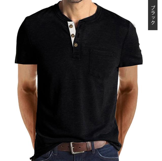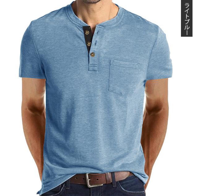 夏新作 tシャツ メンズ 半袖 Tシャツ ヘンリーネック メンズ ボタン 丸首 レイヤード 無地 通勤 ゴルフ フィットネス 夏服 父の日 プレゼント
