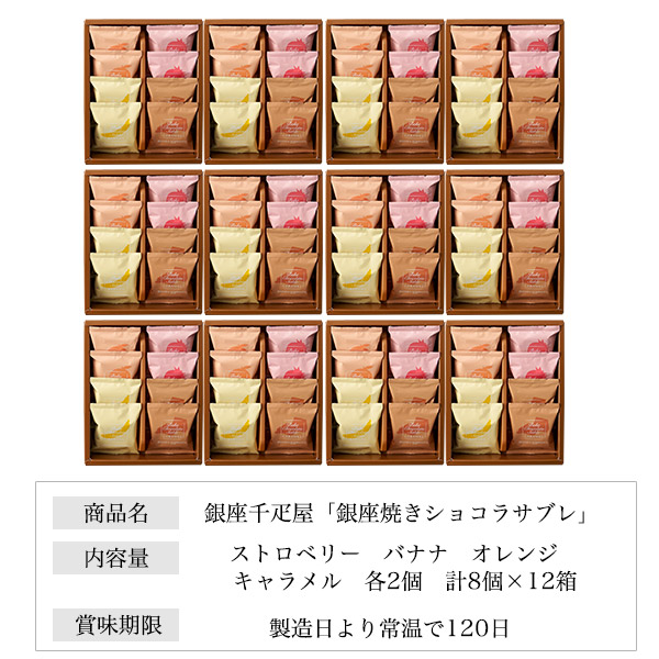 【12箱セット】ギフト 銀座千疋屋 銀座焼きショコラサブレ 96個セット(4種8個セット×12箱)個包装 洋菓子 焼き菓子詰め合わせ スイーツ チョコサブレ クッキー 贈答用 プレゼント ギフト 季節の贈り物 内祝い 2025年 お歳暮 ギフト 熨斗 常温配送