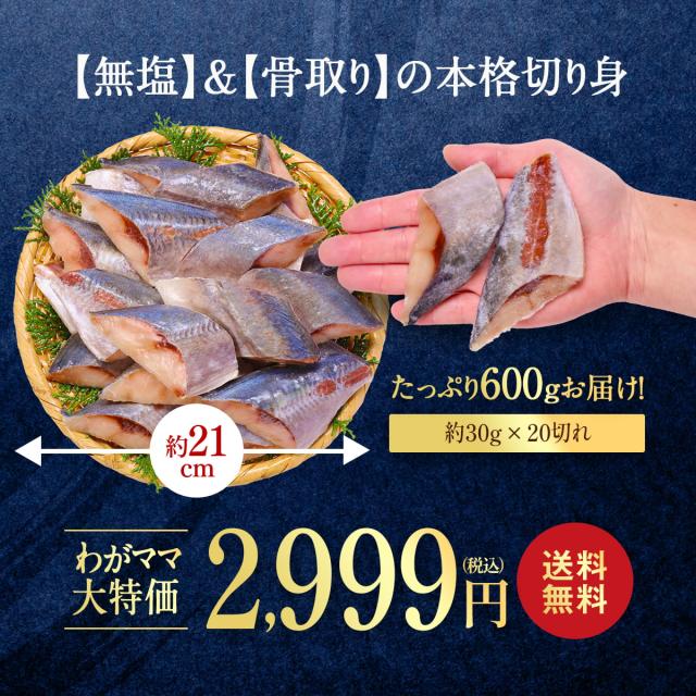 無塩 骨取り 天然ぶり 切身(30g×20切・60g×10切)2個で600円OFF!3個で1,200円OFF!4個で2,000円OFF! ぶり ブリ 鰤 切り身 骨なし 【わがママ骨取り切身】 弁当 朝食